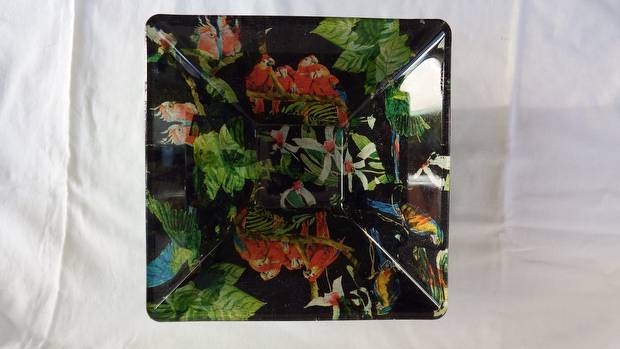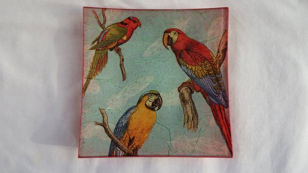 coupelle plate 3 perroquets 12,5 x 12,5 cm