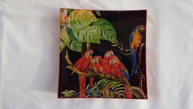 coupelle plate perroquets rouges 12,5 x 12,5 cm