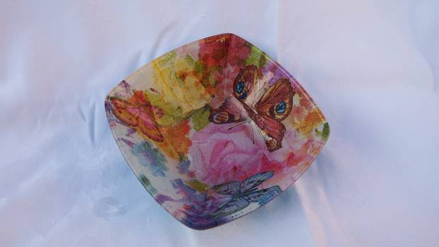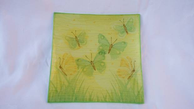 coupelle plate papillons jaune 12,5 x 12,5 cm