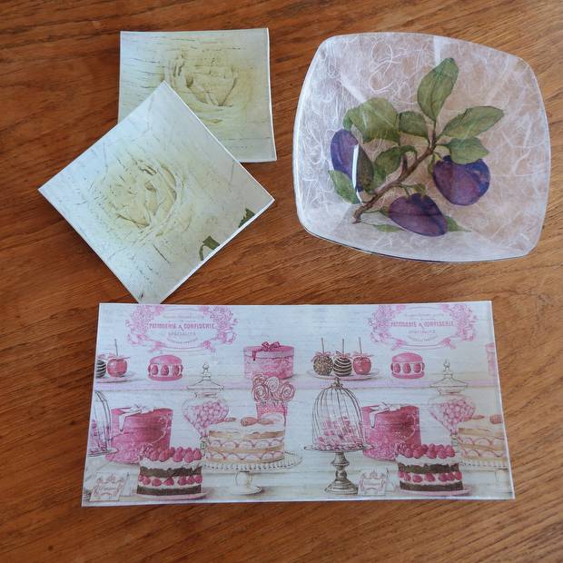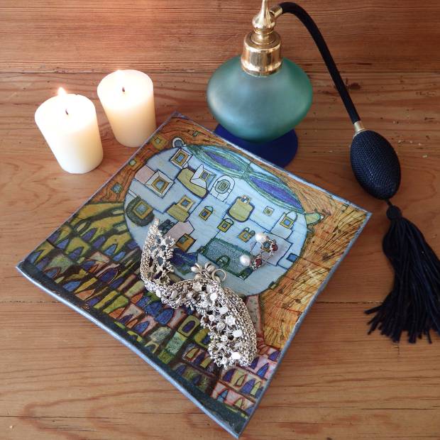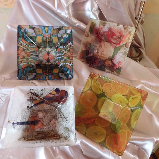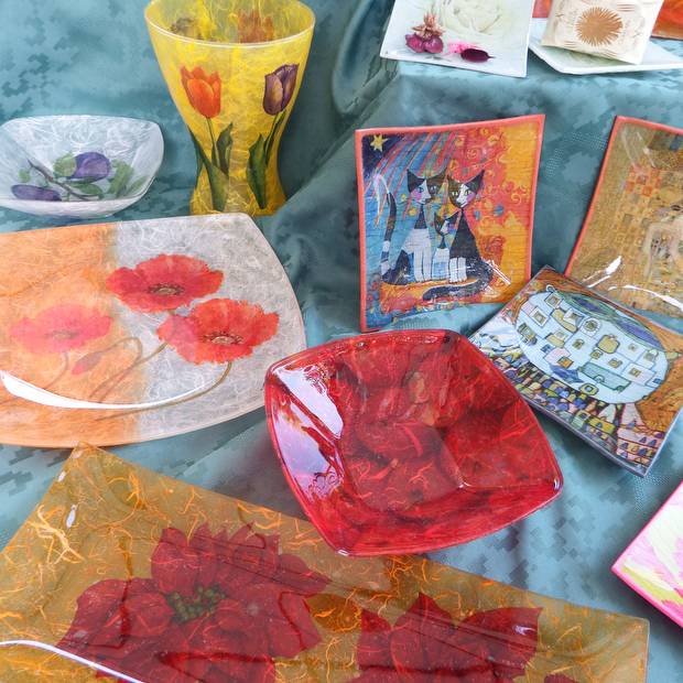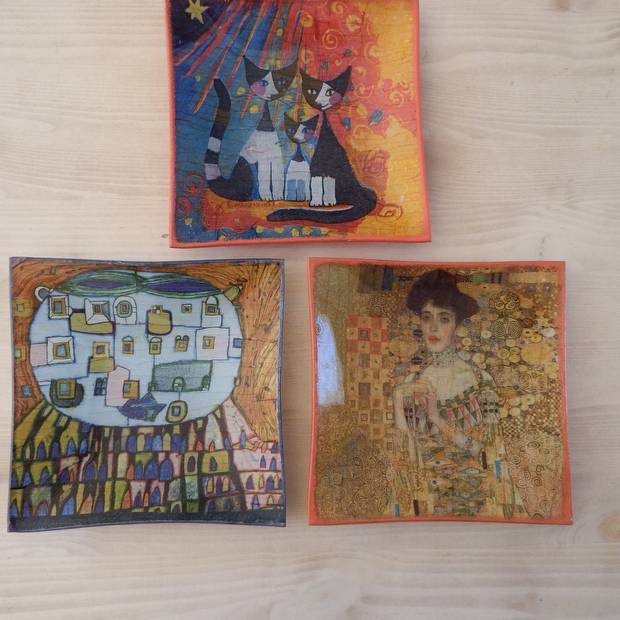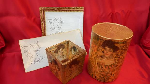Petite Exposition Cocteau et Klimt, plats et photophores coupelles 12,5 x 12,5 cm vide-poche verre soufflé 12,5 x 12,5 cm